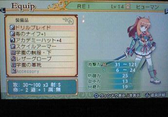 REI:ヒューマン:剣士:27:488:144:ドリルブレイド:毒のナイフ+1:バイキングヘルム:スケイルアーマー:海賊のズボン+5: