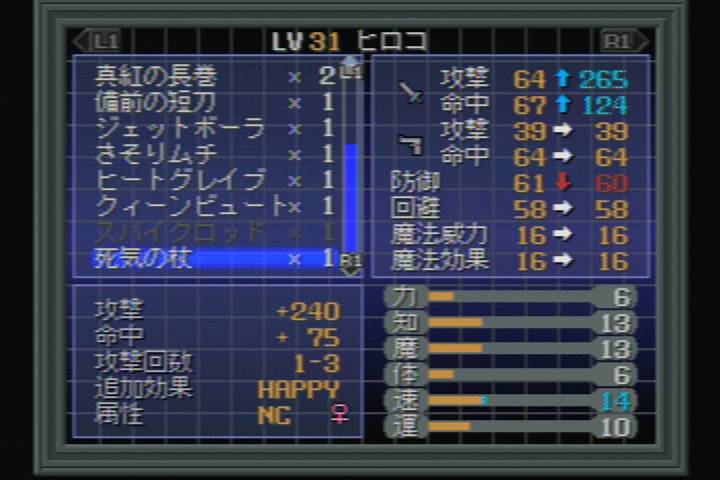 仕方ないのでヒロコに死気の杖を装備させて、2回目は撃破しました。